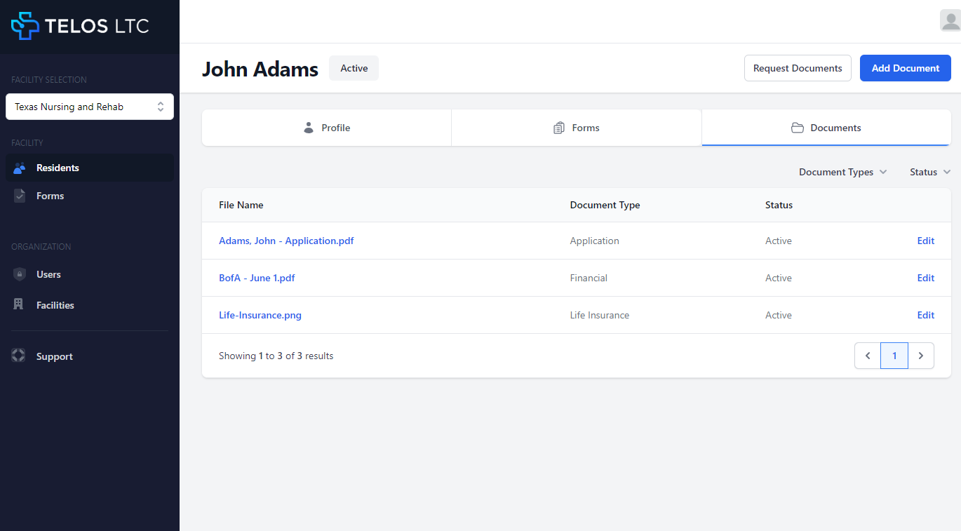 Securely store and maintain supporting documentation for your residents so everything is organized in one place.