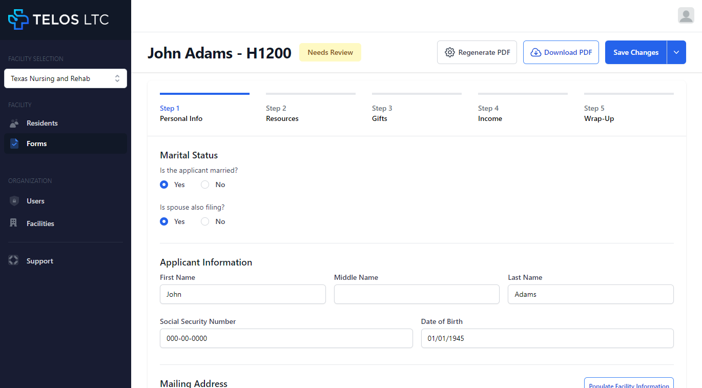Telos LTC has been a tremendous help in filling out Medicaid applications for our Nursing facility residents in Texas. Saves the business office manager time and provides reassurance that our residents will get approved or points out red flags if there is a potential issue with eligibility.